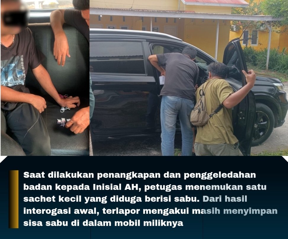 Saat dilakukan penangkapan dan penggeledahan badan, petugas menemukan satu sachet kecil yang diduga berisi sabu. Dari hasil interogasi awal, terlapor mengakui masih menyimpan sisa sabu di dalam mobil miliknya.