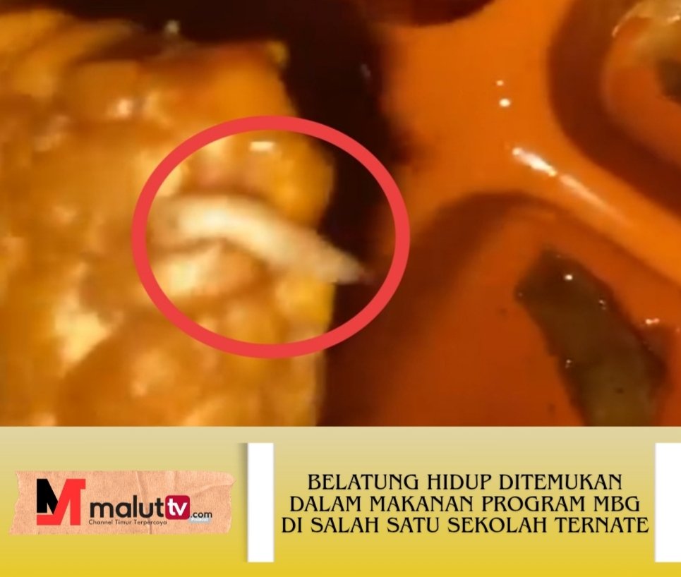 TERNATE, maluttv.com– Temuan seekor belatung hidup di dalam wadah makanan program Makan Bergizi Gratis (MBG) menggegerkan siswa-siswi kelas IX di Madrasah Tsanawiyah Negeri (MTsN) 1 Kota Ternate, pada Selasa (29/ 7/ 2025). Kejadian tersebut terekam dalam video berdurasi 29 detik yang kini beredar luas dan menjadi viral.
