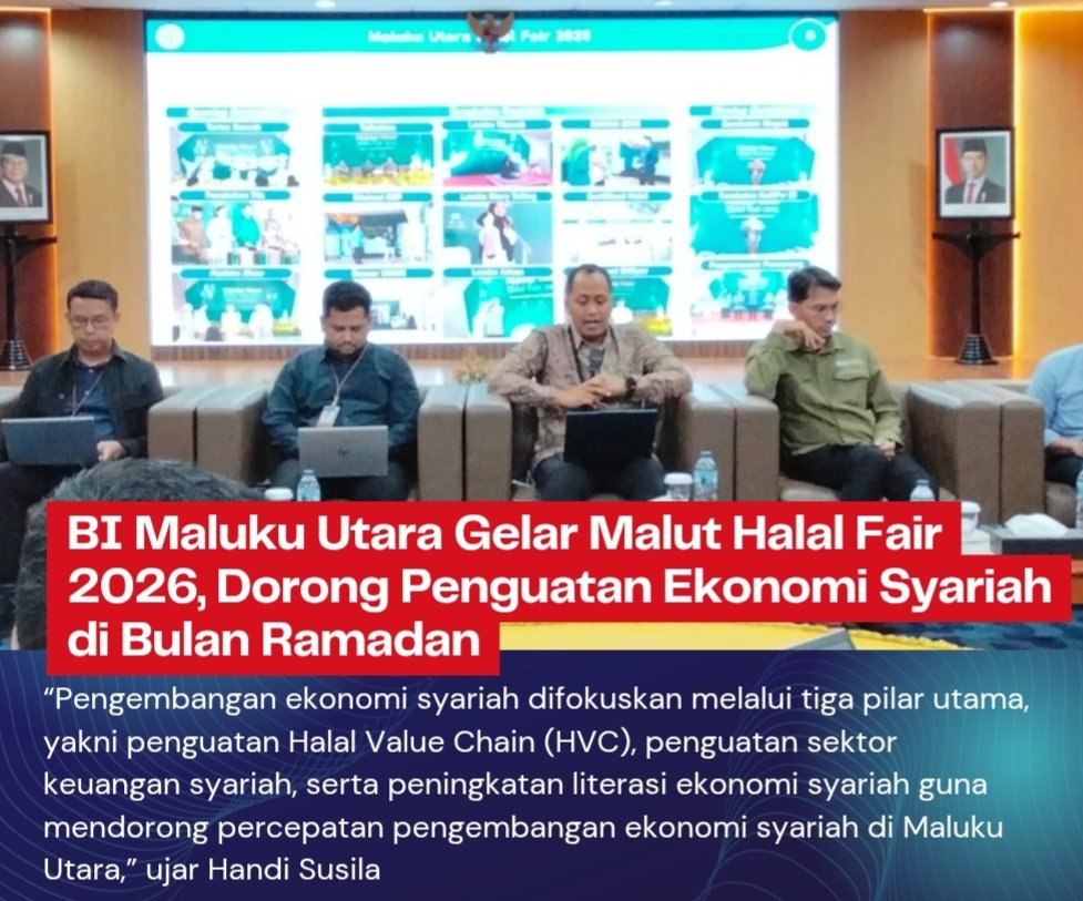 “Pengembangan ekonomi syariah difokuskan melalui tiga pilar utama, yakni penguatan Halal Value Chain (HVC), penguatan sektor keuangan syariah, serta peningkatan literasi ekonomi syariah guna mendorong percepatan pengembangan ekonomi syariah di Maluku Utara,” ujar Handi, Kamis (26/2/2026).