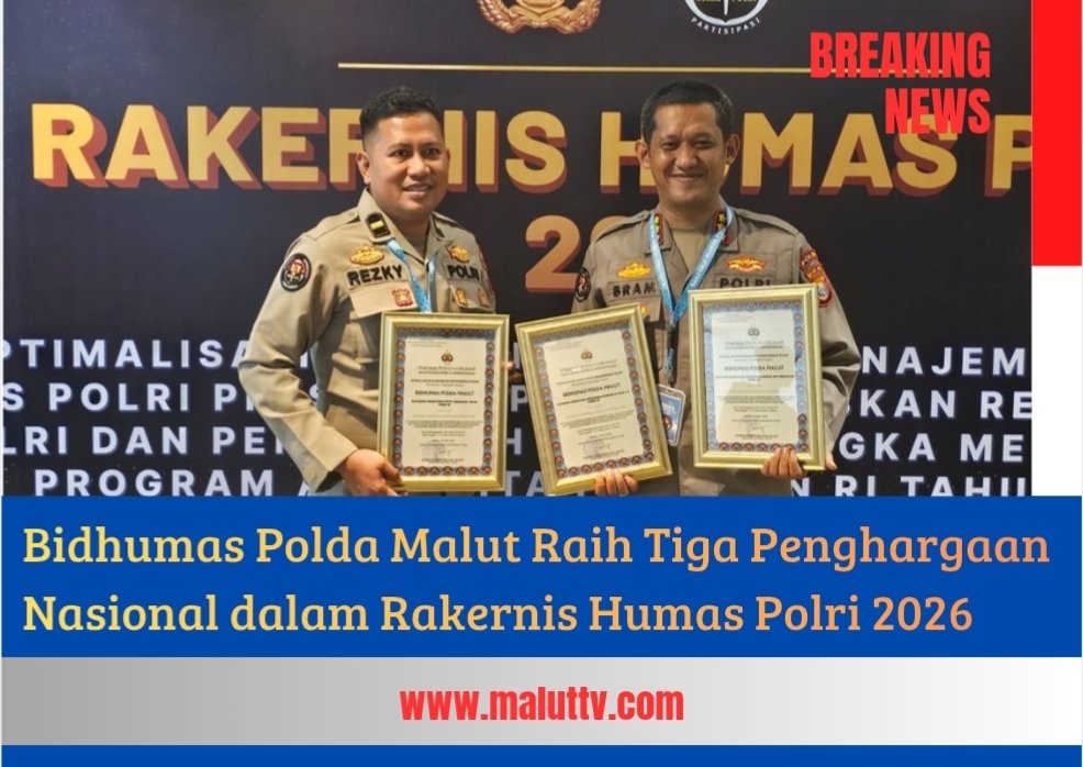 JAKARTA, maluttv.com- Bidang Hubungan Masyarakat (Bidhumas) Kepolisian Daerah Maluku Utara kembali mencatatkan prestasi membanggakan di kancah nasional dalam Rapat Kerja Teknis (Rakernis) Humas Polri Tahun 2026 yang diselenggarakan di Jakarta, pada Rabu (15/4).