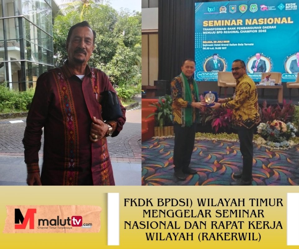 TERNATE, maluttv.com – Forum Komunikasi Dewan Komisaris Bank Pembangunan Daerah Seluruh Indonesia (FKDK BPDSI) Wilayah Timur menggelar Seminar Nasional dan Rapat Kerja Wilayah (Rakerwil) dengan tema “Transformasi Bank Pembangunan Daerah Menuju BPD Regional Champion 2045”. Kegiatan ini berlangsung di Ballroom Sahid Bela Hotel, Kota Ternate, pada Selasa (29/ 7/ 2025).