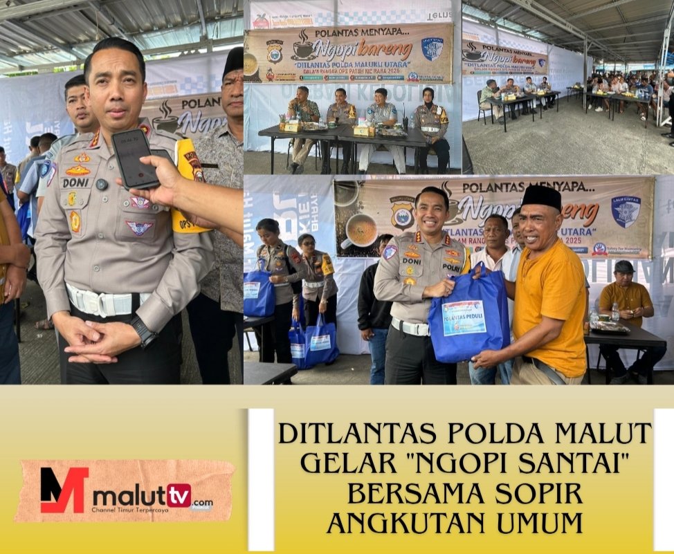 TERNATE, maluttv.com– Dalam rangka Operasi Patuh Kie Raha 2025, Direktorat Lalu Lintas (Ditlantas) Polda Maluku Utara menggelar kegiatan edukatif bertajuk “Polantas Menyapa” yang dikemas dalam tema “Ngopi Bareng” bertempat di Terminal Gamalama, Kota Ternate, Jumat (18/ 7/ 2025).