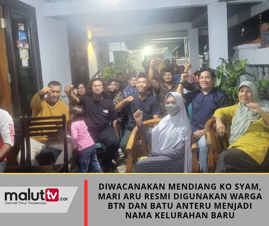 Masyarakat BTN dan Batu Anteru bersepakat nama kelurahan baru tersebut adalah Mari Aru. Sebelumnya sempat juga diwacanakan nama Maliaro Utara (Malut). Namun, forum kemudian memutuskan nama kelurahan baru fix bernama Mari Aru. Nama Mari Aru yang artinya Batu Anteru tersebut juga sempat diwacanakan mendiang Mantan Walikota Ternate, Drs. Hi. Syamsir Andili. Sebagai bentuk penghargaan dan mengaminkan pemikiran Ko Syam, Mari Aru akhirnya resmi dinisbatkan sebagai nama kelurahan baru, BTN dan Batu Anteru. (dir/mtv)