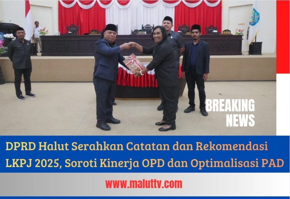 HALUT, maluttv.com – Dewan Perwakilan Rakyat Daerah (DPRD) Kabupaten Halmahera Utara resmi menyerahkan catatan dan rekomendasi terhadap Laporan Keterangan Pertanggungjawaban (LKPJ) Kepala Daerah Tahun Anggaran 2025 dalam rapat paripurna yang digelar di ruang sidang DPRD Halmahera Utara, Desa Gamsungi, Tobelo, Jumat (24/4/2026).
