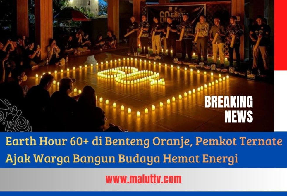 TERNATE, maluttv.com- Aksi kampanye peduli lingkungan melalui Earth Hour 60+ kembali digelar di Benteng Oranje, Sabtu malam (25/4/2026). Kegiatan yang diprakarsai Pemerintah Kota Ternate bersama Harita Group itu diwujudkan dengan pemadaman lampu selama satu jam sebagai simbol komitmen menjaga keberlangsungan bumi.