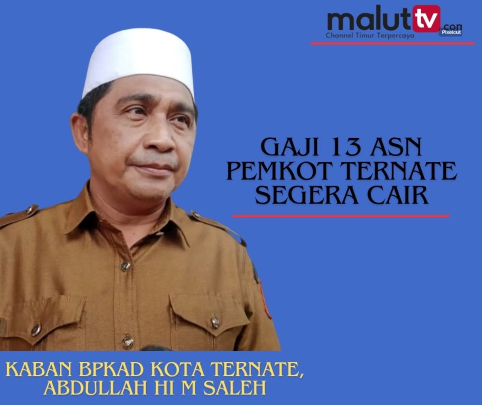 TERNATE, maluttv.com – Kabar baik bagi para Aparatur Sipil Negara (ASN) di lingkungan Pemerintah Kota Ternate. Gaji ke-13 dipastikan cair bulan depan, tepatnya Juli 2025. Hal ini disampaikan langsung oleh Kepala Badan Pengelolaan Keuangan dan Aset Daerah (BPKAD) Kota Ternate, Abdullah Hi M Saleh, pada Selasa (17/ 6/ 2025).