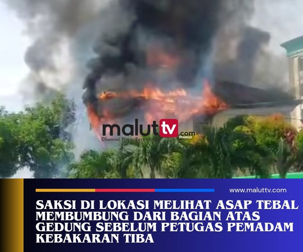 TERNATE, maluttv.comKebakaran melanda Gedung Musdalifah yang berada di kompleks Asrama Haji, Kelurahan Ngade, Kecamatan Ternate Selatan, pada Selasa (17/11/2025). Api yang berkobar sekitar pukul 10.50 WIT itu menghanguskan sebagian besar area lantai dua bangunan.
