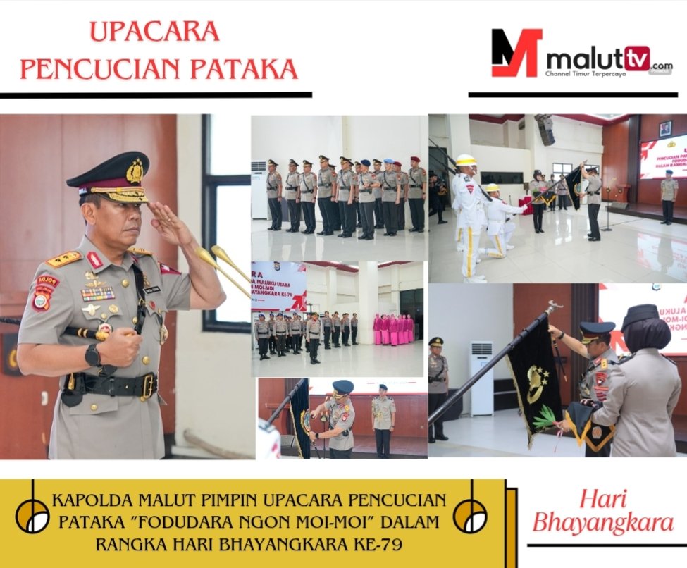 Foto : Kapolda Maluku Utara Pimpin Upacara Pencucian Pataka “Fodudara Ngon Moi-Moi” Dalam Rangka Hari Bhayangkara ke-79