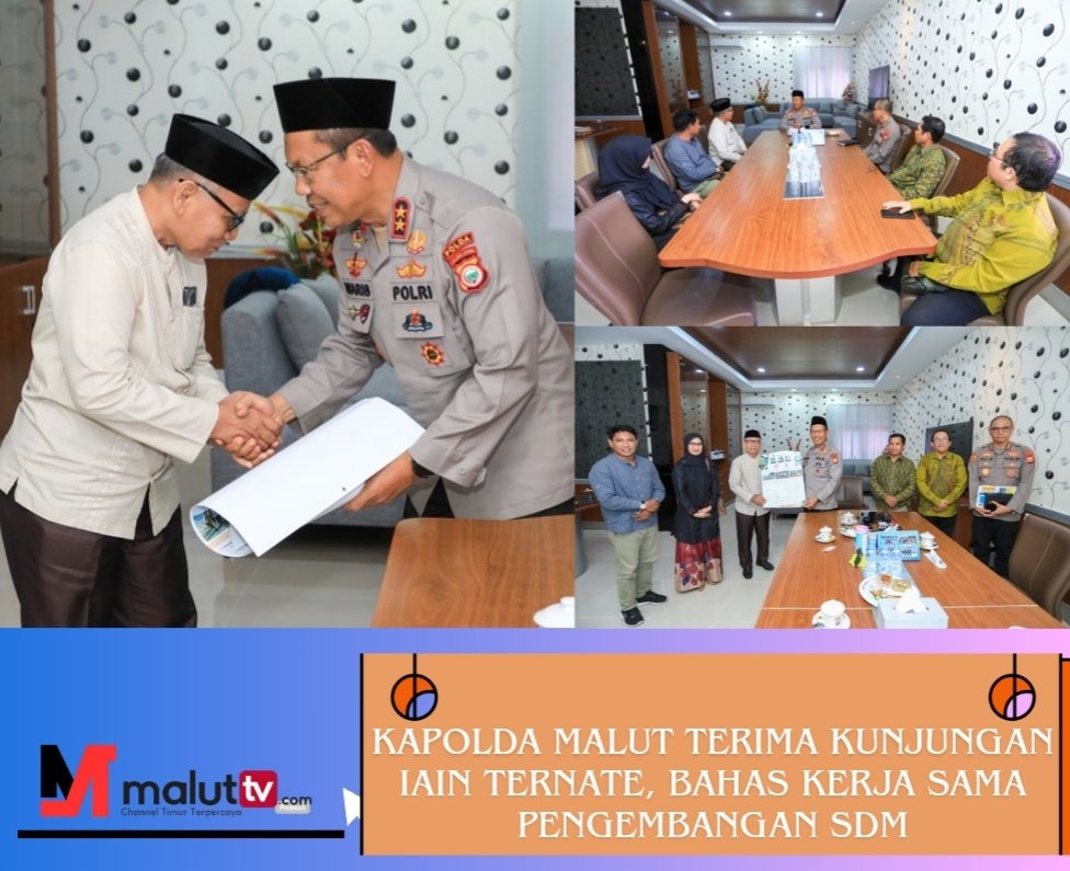 TERNATE, maluttv.com– Kapolda Maluku Utara Irjen Pol. Drs. Waris Agono, M.Si menerima kunjungan silaturahmi dari Institut Agama Islam Negeri (IAIN) Ternate di ruang kerjanya pada Jumat, (4/ 7/ 2025).