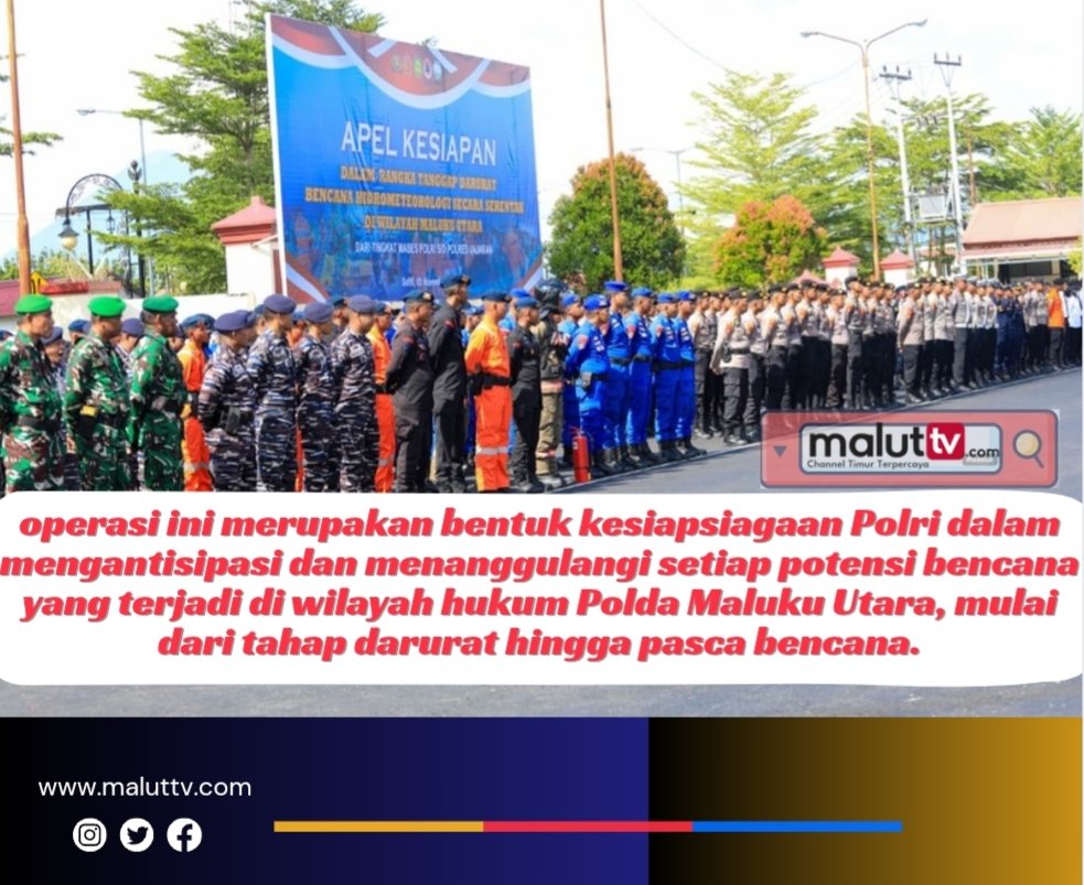 Kabid Humas Polda Maluku Utara, Kombes Pol. Bambang Suharyono, S.I.K., M.H. saat dikonfirmasi menjelaskan bahwa, operasi ini merupakan bentuk kesiapsiagaan Polri dalam mengantisipasi dan menanggulangi setiap potensi bencana yang terjadi di wilayah hukum Polda Maluku Utara, mulai dari tahap darurat hingga pasca bencana.