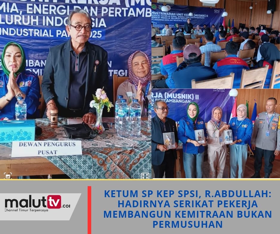 HALTENG, maluttv.com- Kehadiran organisasi buruh kerap dipandang sebelah mata bahkan diartikulasikan subjektif oleh pihak perusahaan. Pemikiran pelaku usaha tersebut kemudian diluruskan oleh Ketua Umum Pengurus Pusat Serikat Pekerja Kimia, Energi dan Pertambangan Serikat Pekerja Seluruh Indonesia (SP KEP SPSI), R. Abdullah.