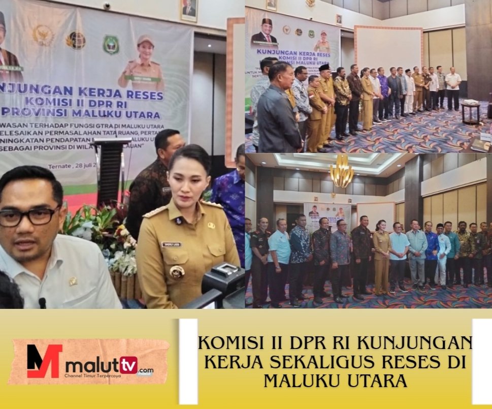 TERNATE, maluttv.com– Komisi II Dewan Perwakilan Rakyat Republik Indonesia (DPR RI) melakukan kunjungan kerja ke Provinsi Maluku Utara dalam rangka agenda reses Masa Persidangan IV Tahun Sidang 2024–2025. Kunjungan ini difokuskan pada pengawasan terhadap pelaksanaan tugas Gugus Tugas Reforma Agraria (GTRA), penataan ruang dan pertanahan, serta strategi peningkatan pendapatan daerah berbasis wilayah kepulauan.
