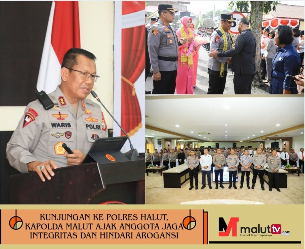 HALUT, maluttv.com – Kepala Kepolisian Daerah Maluku Utara, Irjen Pol. Drs. Waris Agono, M.Si, melakukan kunjungan kerja ke Kabupaten Halmahera Utara dan memberikan Arahan kepada jajaran Personel Polres Halut, Jumat, (27/ 6/ 2025).