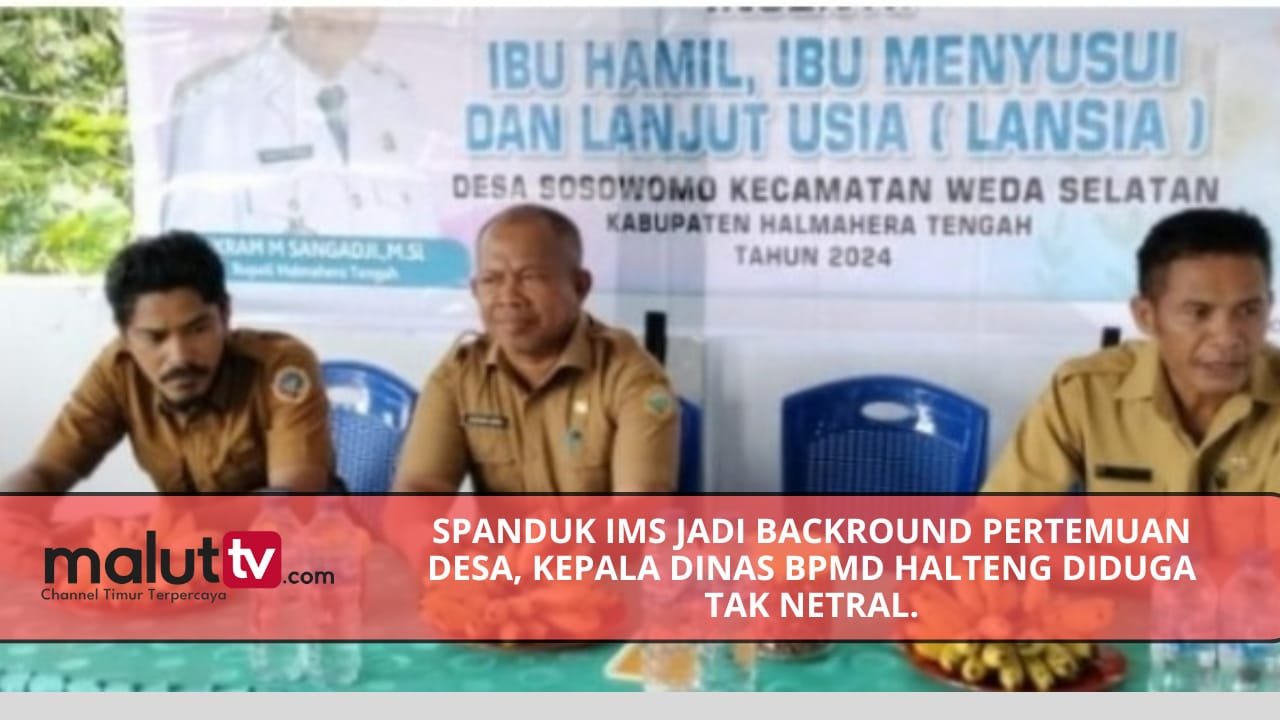 Buktinya, Kepala Dinas Badan Pemberdayaan Masyarakat Desa (BPMD) Halmahera Tengah, Mistami Jamal masih menggunakan spanduk mantan Pj. Ikram Malan Sangadji sebagai background pertemuannya dengan Pemerintah Desa Sosowomo, Kecamatan Weda Selatan, Selasa (03/9).