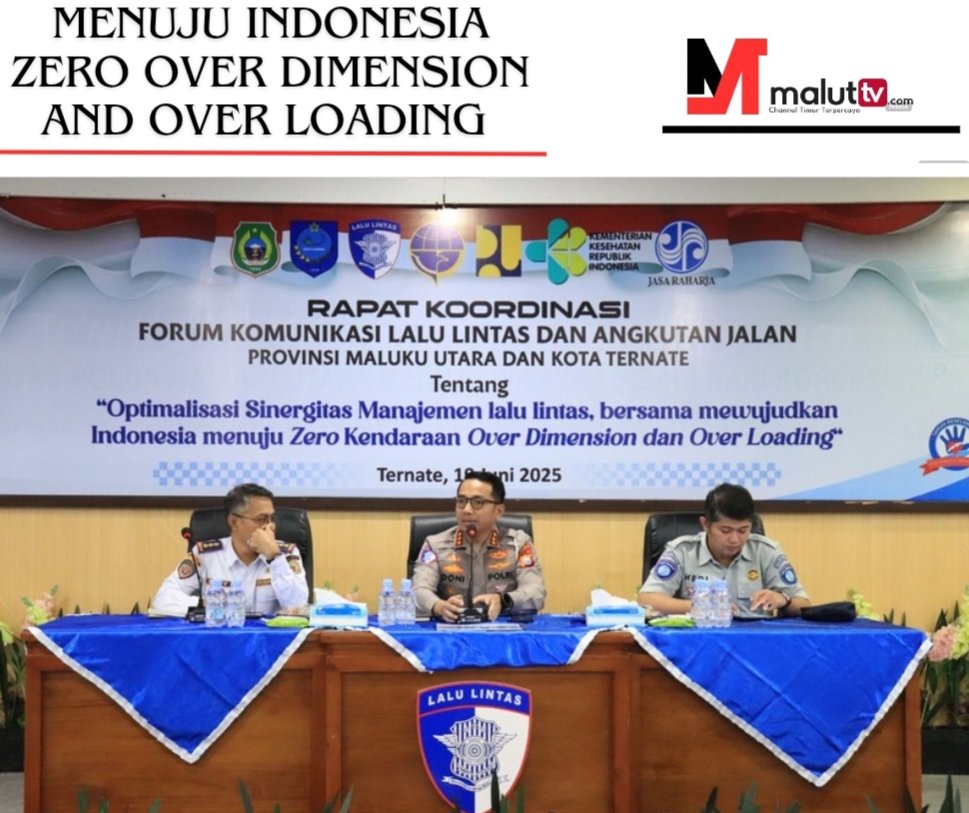 TERNATE, maluttv.com- Polda Maluku Utara melalui Ditlantas Polda Malut melaksanakan rapat koordinasi forum komunikasi lalu lintas dan angkutan jalan guna optimalisasi sinergitas manajemen lalu lintas untuk wujudkan Indonesia _Zero Over Dimension and Over Loading_ bertempat di Aula Patriatama Ditlantas Polda Malut, Kamis (19/6) kemarin.