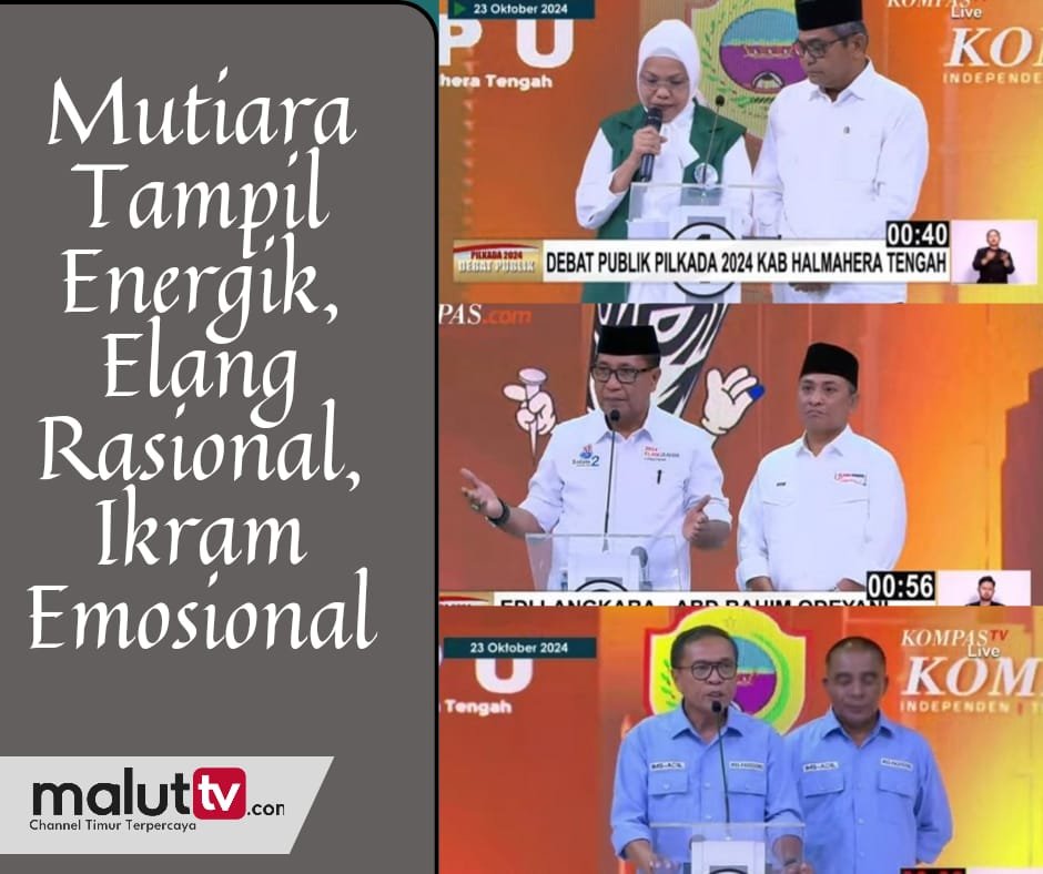 JAKARTA, maluttv.com- Debat publik Calon Bupati dan Wakil Bupati Halmahera Tengah perdana tahun 2024 yang diselenggarakan KPUD melalui siaran langsung Kompas TV, Rabu (23/10) sekitar pukul 14.00 WIB berlangsung sukses.