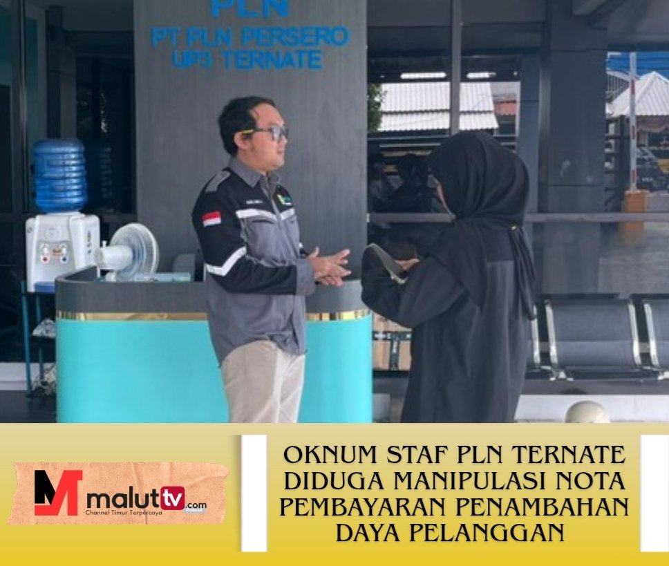 TERNATE, maluttv.com- Praktik kotor kembali mencoreng nama lembaga pelayanan publik. Seorang oknum staf PLN Kota Ternate berinisial F, diduga terlibat dalam praktik manipulasi nota pembayaran penambahan daya listrik milik pelanggan. Tindakan tersebut terbongkar setelah tim investigasi maluttv.com menerima laporan dari salah satu warga yang merasa dirugikan oleh besarnya nominal biaya yang tak wajar dibanding tarif resmi.