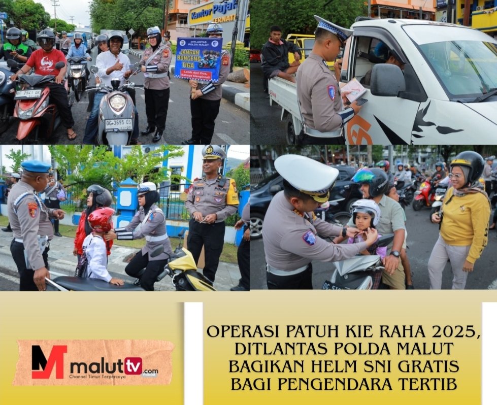 TERNATE, maluttv.com — Direktorat Lalu Lintas (Ditlantas) Kepolisian Daerah Maluku Utara melaksanakan Operasi Patuh Kie Raha 2025 sebagai bagian dari upaya menumbuhkan budaya tertib berlalu lintas dan keselamatan dalam berkendara di wilayah Maluku Utara.