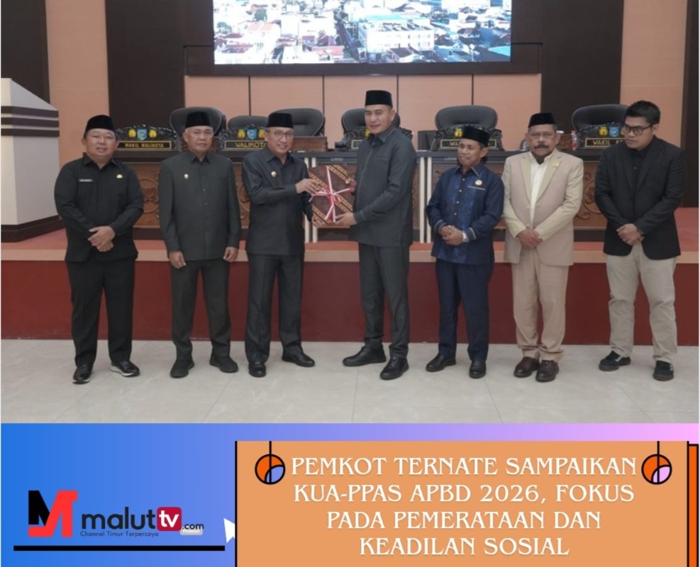 TERNATE, maluttv.com – Pemerintah Kota Ternate secara resmi menyampaikan Rancangan Kebijakan Umum Anggaran dan Prioritas Plafon Anggaran Sementara (KUA-PPAS) untuk APBD tahun anggaran 2026 dalam rapat paripurna DPRD Kota Ternate, Senin (14/7/2025).