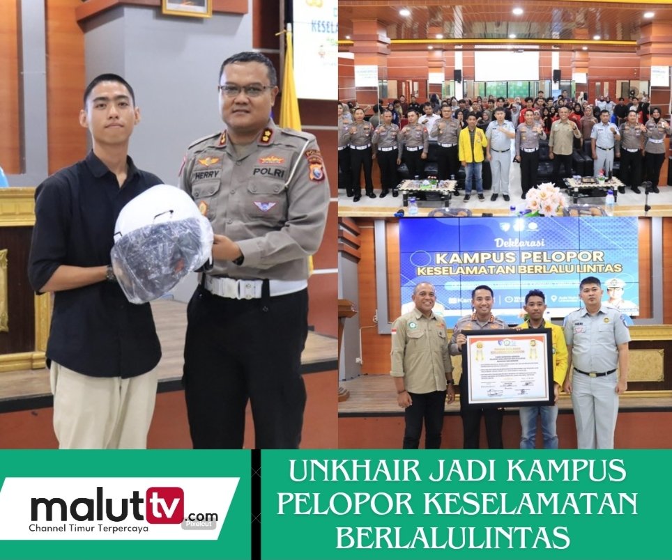 TERNATE, maluttv.com- Dalam rangka meningkatkan kesadaran dan partisipasi aktif mahasiswa dalam mewujudkan budaya tertib berlalu lintas, Direktorat Lalu Lintas Polda Maluku Utara dan Perwakilan Jasa Raharja Provinsi Maluku Utara bersama Universitas Khairun mendeklarasikan komitmen bersama sebagai Kampus Pelopor Keselamatan Berlalu Lintas bertempat di Aula Gedung Rektorat Universitas Khairun, kamis (15/ 5/ 2025).