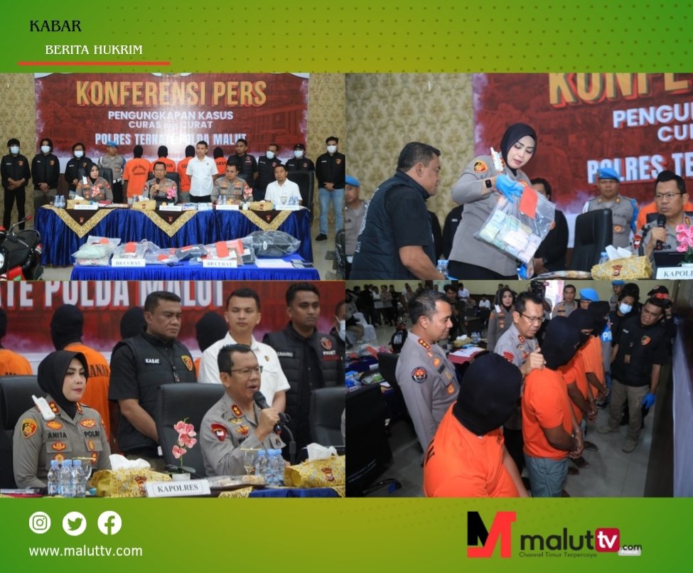 TERNATE, maluttv.com – Kepolisian Daerah (Polda) Maluku Utara bersama Polres Ternate berhasil membongkar kasus pencurian dengan kekerasan yang menimbulkan keresahan warga Kota Ternate.