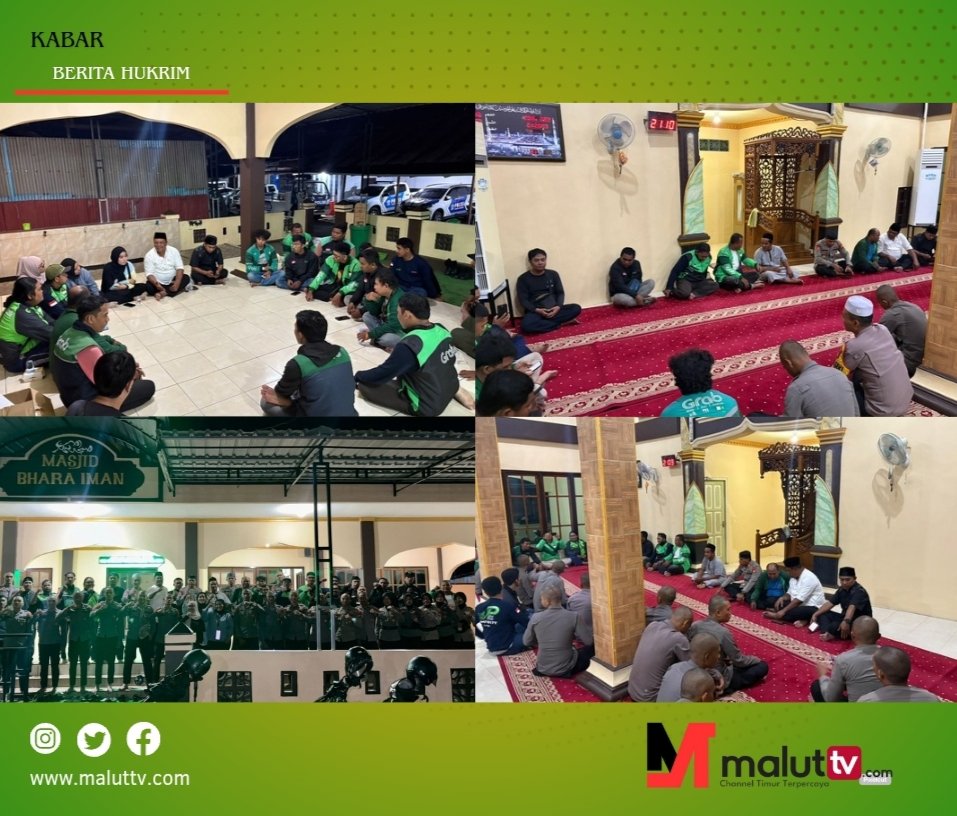 TERNATE, maluttv.com – Polres Ternate bersama komunitas driver ojek online (Ojol) Kota Ternate menggelar doa bersama untuk mendoakan Almarhum Affan Kurniawan yang meninggal dunia dalam kejadian unjuk rasa, serta Almarhum AKBP Darkun, Danyon Brimob Sat Brimob Polda Metro Jaya, yang wafat saat penanganan unjuk rasa, Jumat (29/8/25) malam.