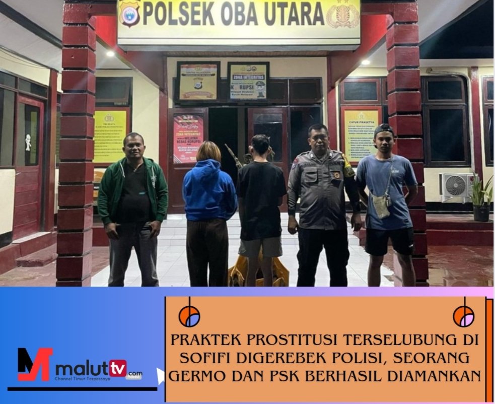 TIDORE, maluttv.com– Praktik prostitusi terselubung di wilayah Kelurahan Sofifi, Kecamatan Oba Utara, Kota Tidore Kepulauan, berhasil diungkap aparat Polsek Oba Utara dalam operasi penindakan yang digelar pada Kamis (3/ 7/ 2025) dini hari.