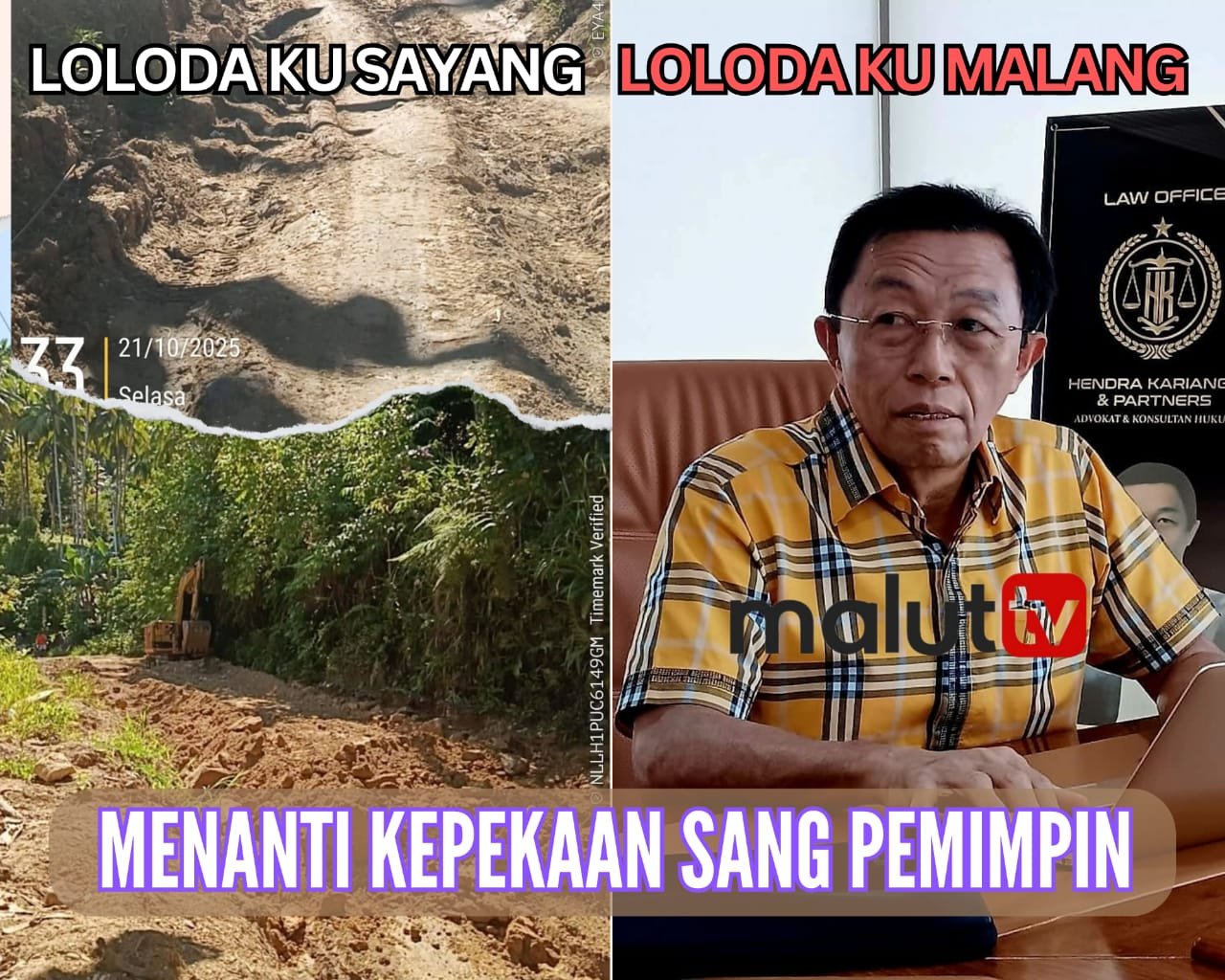 Akademisi dan pengacara kondang Maluku Utara asal Loloda, Dr. Hendra Karianga,SH.,MH mendesak Gubernur Maluku Utara, Sherly Tjoanda untuk segera membangun ruas jalan Kecamatan Loloda Utara karena sudah puluhan tahun termarjinalkan.