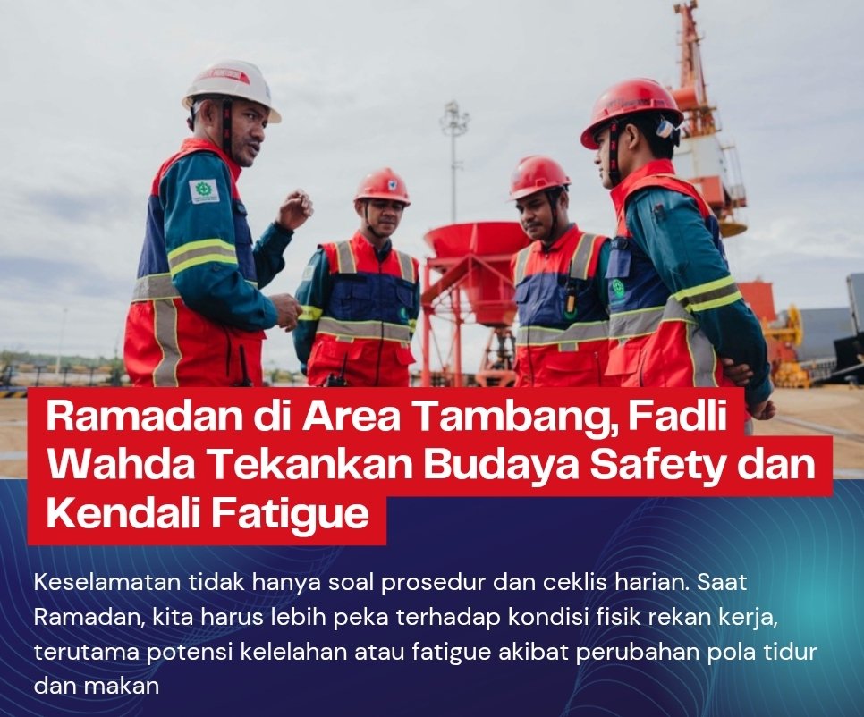 “Keselamatan tidak hanya soal prosedur dan ceklis harian. Saat Ramadan, kita harus lebih peka terhadap kondisi fisik rekan kerja, terutama potensi kelelahan atau fatigue akibat perubahan pola tidur dan makan,” ujarnya.