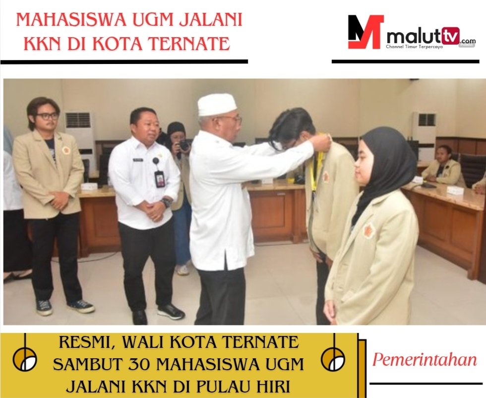 TERNATE, maluttv.com – Wali Kota Ternate, M. Tauhid Soleman, secara resmi menyambut kedatangan 30 mahasiswa Universitas Gadjah Mada (UGM) yang akan melaksanakan program Kuliah Kerja Nyata (KKN) di Pulau Hiri selama 50 hari ke depan.