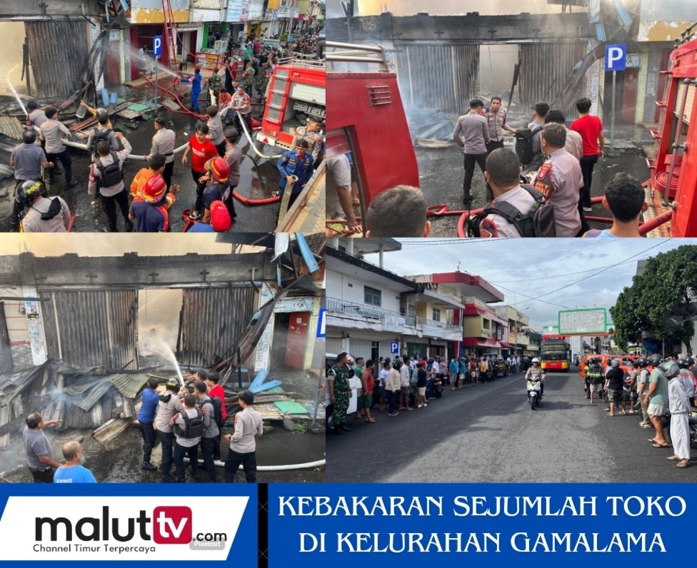 TERNATE, maluttv.com – Kebakaran hebat yang melanda kawasan padat penduduk di Gamalama, Kota Ternate, pada Rabu (4/6/2025), langsung direspons cepat oleh jajaran Kepolisian Resor (Polres) Ternate. Dalam peristiwa yang menghanguskan sejumlah unit toko itu, aparat kepolisian turun langsung membantu proses evakuasi dan pemadaman api bersama tim pemadam kebakaran.