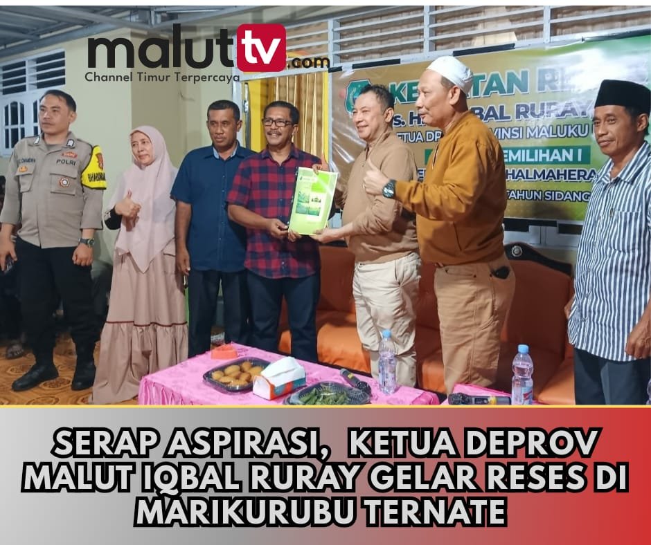 TERNATE, maluttv.com- Ketua DPRD Provinsi Maluku Utara, Drs. H. Iqbal Ruray, MBA menjaring aspirasi di Kelurahan Marikurubu, Kecamatan Ternate Tengah, Kota Ternate, Kamis (25/09/2005) malam sekitar pukul 20:00 WIT. Selain dihadiri lurah setempat, acara reses masa persidangan III periode sidang 2004/2005 tersebut dihadiri tokoh masyarakat, tokoh pemuda dan tokoh adat.