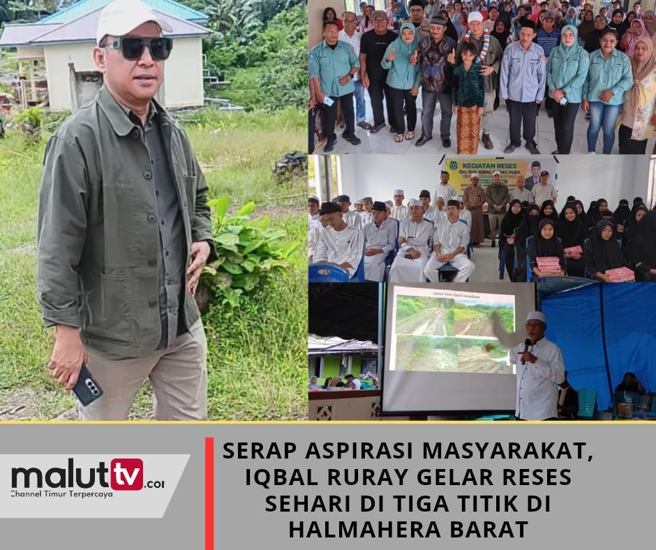 HALBAR, maluttv.com- Reses perdana yang digelar Ketua Dewan Perwakilan Rakyat Provinsi Maluku Utara, Drs. Iqbal Ruray di Kabupaten Halmahera Barat, Kamis (23/01) lalu berjalan lancar. Sedikitnya tiga lokasi yang dikunjungi Iqbal sebagai titik fokus resesnya, yaitu Desa Jarakore, Kecamatan Sahu, Desa Ake Harà dan Akelamo Kao, Kecamatan Jailolo Selatan.