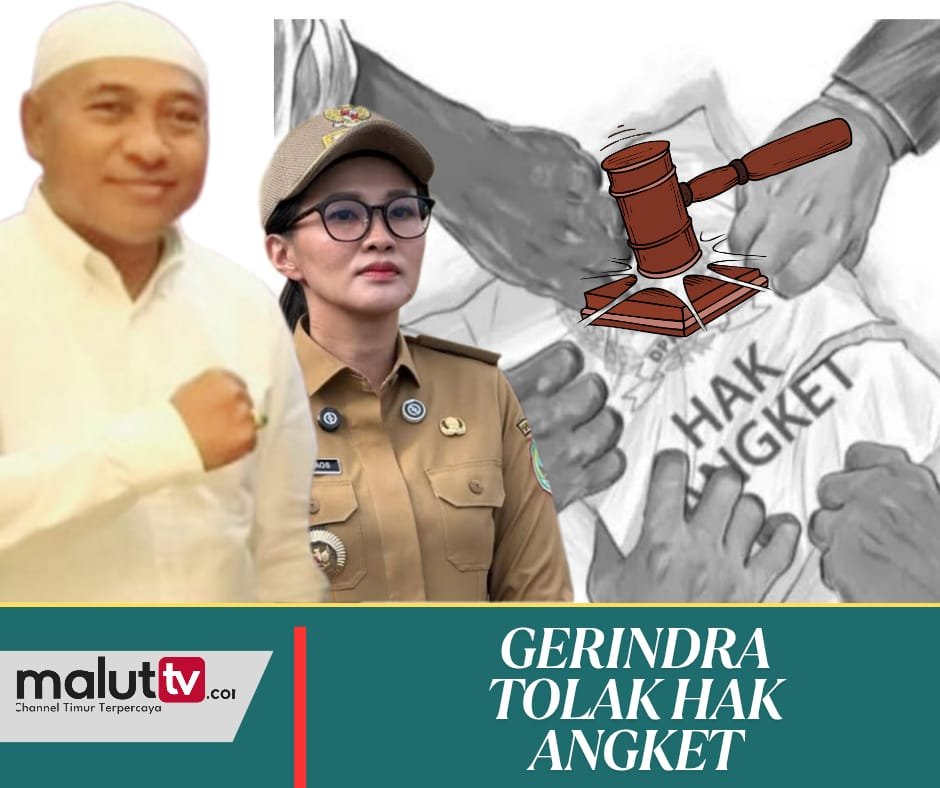 Salah satu partai politik pemilik 4 kursi di DPRD Provinsi Maluku Utara, Gerindra dengan tegas menolak rencana pembentukan Pansus hak angket untuk mengevaluasi dan menyelidiki sejumlah kebijakan dan kinerja Gubernur dan Wakil Gubernur Maluku Utara, Sjerly Tjoanda dan Sarbin Sehe.