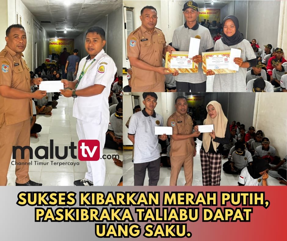 Kepala Badan Kesatuan Bangsa dan Politik (Kesbangpol) Kabupaten Pulau Taliabu. Sutomo Teapon, S.STP mengatakan, pelepasan anggota Paskibraka berlangsung di lokasi karantina Penginapan Ilfamal Bobong. Selain mendapatkan sertifikat, Anggota Paskibraka Pulau Taliabu tersebut dihadiahi uang saku, masing-masing sebesar Rp. 3 juta. Bupati Sashabila Mus juga menyerahkan insentif kepada Pelatih Purna 10 orang, masing-masing sebesar Rp. 2 jt, Tim Medis 3 Orang, masing-masing Rp. 3 juta dan Panitia pelaksana 20 orang, masing-masing Rp. 450 ribu.