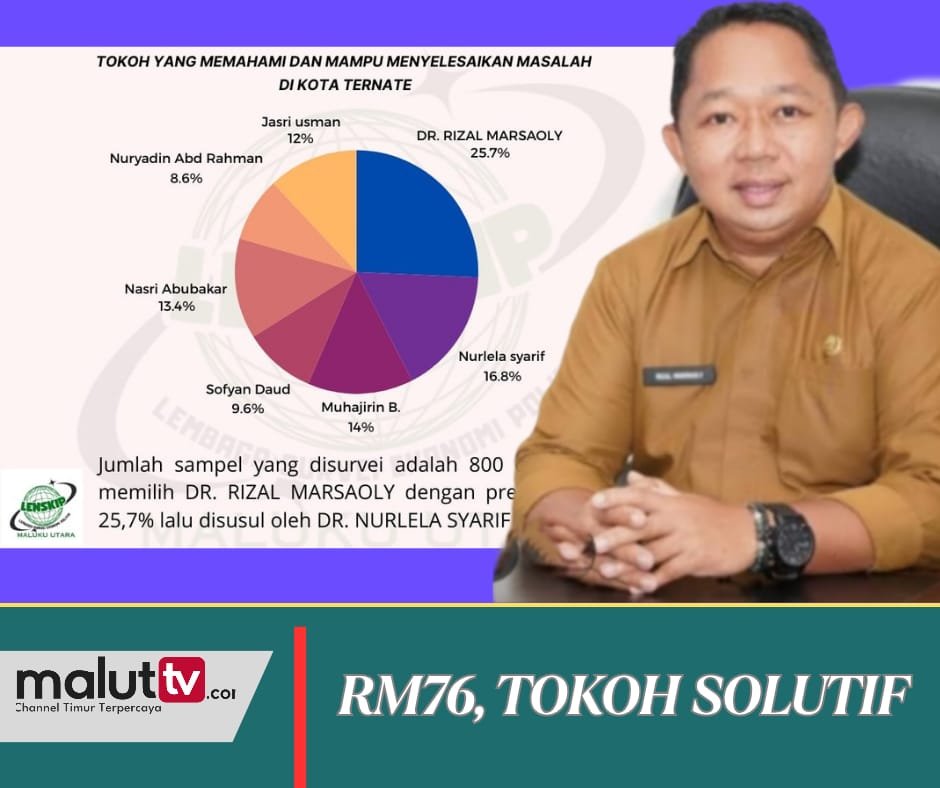 Nasution menjelaskan, responden menempatkan dan atau memilih RM76, sapaan akrab Rizal Marsaoly sebagai tokoh solutif mengungguli nama tokoh lain dalam bursa survei karena mantan Kepala Bapelitbangda Kota Ternate ini aktif dan selalu tampil di tengah permasalahan publik.