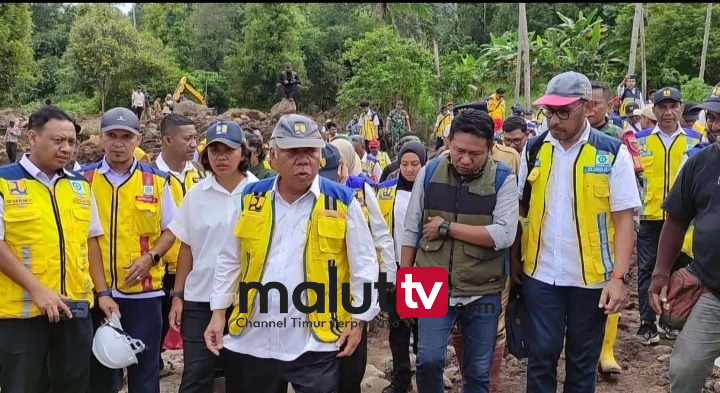 TERNATE, maluttv.com- Setibanya di Kota Ternate, Maluku Utara, Menteri Pekerjaan Umum dan Perumahan Rakyat (PUPR), Mochamad Basuki Hadimuljono bersama rombongan, meninjau langsung lokasi banjir bandang di Kelurahan Rua, pada Selasa (03/ 9/ 2024).