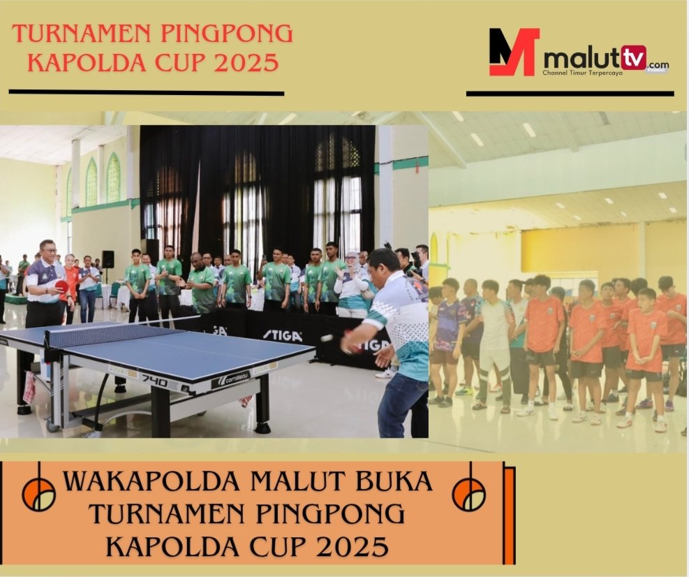 TERNATE, maluttv.com – Wakil Kepala Kepolisian Daerah Maluku Utara, Brigjen Pol. Stephen M. Napiun, S.I.K, S.H., M.Hum mewakili Kapolda Malut membuka secara resmi Turnamen Pingpong Kapolda Malut Cup 2025 di Gedung Duafa Center, Ternate, pada Jumat (27/ 6/ 2025).