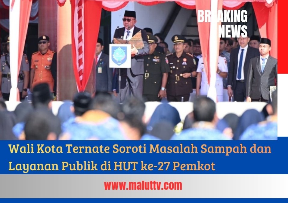 TERNATE, maluttv.com- M. Tauhid Soleman menegaskan pentingnya pembenahan tata kelola sampah dan peningkatan kualitas pelayanan publik dalam momentum Hari Ulang Tahun ke-27 Pemerintah Kota Ternate yang dirangkaikan dengan peringatan HUT Otonomi Daerah ke-30, Senin (27/4/2026).