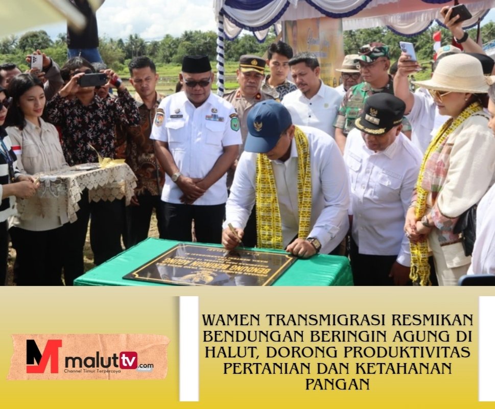 HALUT, maluttv.com Wakil Menteri Transmigrasi H. Viva Yoga Mauladi melakukan kunjungan kerja ke Kabupaten Halmahera Utara, Provinsi Maluku Utara, Rabu (16/7/2025). Dalam kunjungan tersebut, Wamen meresmikan Bendungan Beringin Agung yang terletak di Kecamatan Kao Barat, sekaligus menandai dimulainya pemanfaatan bendung untuk mendukung ketahanan pangan di wilayah transmigrasi.